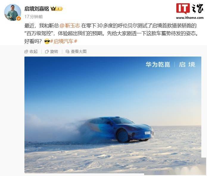近日,启境汽车CEO刘嘉铭透露,他与华为智能汽车解决方案BU CEO靳玉志一同前往呼伦贝尔,在零下30多度的极端低温环境下,对华为乾崑与启境合作打造的首款猎装轿跑进行了深度测试。刘嘉铭表示,这款车的“百万级驾控”表现远超预期,尤其在冰雪路面的稳定性与操控性上展现出强大实力。