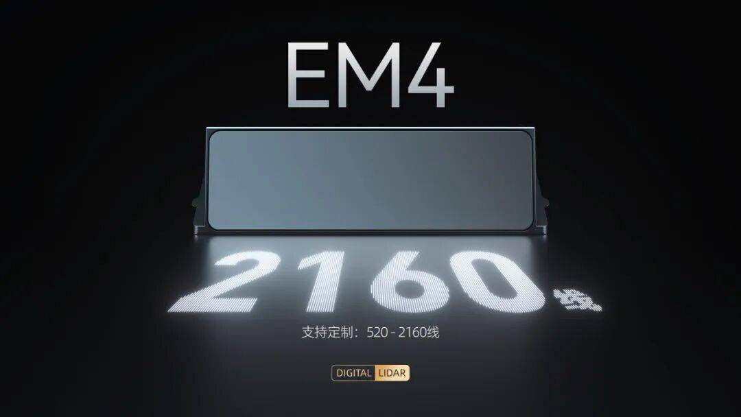 EM4的亮点不仅在于其高性能,更在于其平台化设计的灵活性。根据不同车型和应用场景的需求,EM4支持定制从520线到2160线的多种技术方案。速腾聚创强调,公司是行业内唯一具备为车企提供从520线到2160线超高清激光雷达成熟技术方案能力的科技企业,这为汽车制造商在智能驾驶领域的差异化竞争提供了有力支持。