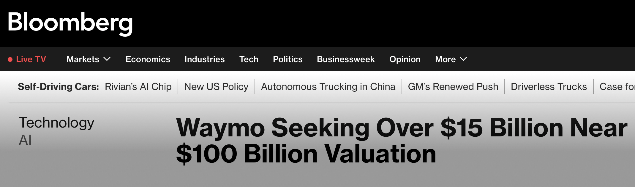 自动驾驶赛道再掀热潮!Waymo拟千亿融资,估值或达7800亿领跑Robotaxi