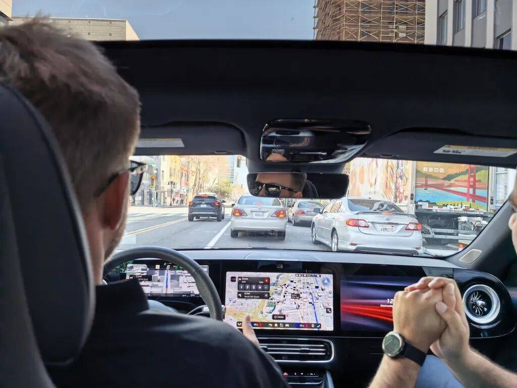 与国内智能驾驶试驾偏好重庆、成都这类交通复杂地段不同,此次圣何塞的试驾路线显得波澜不惊。然而,平静之下,英伟达在智能驾驶行业的野心正汹涌澎湃。试驾过程中,车辆的智能驾驶表现有不少亮点。在四向停路口,车辆准确识别并遵循美国复杂的路权规则,按先到先得顺序,稳稳通过;遇到高速变道带,提前减速,以平滑节奏完成变道,如同经验丰富的老司机。不过,在一个行人距离尚远的人行横道前,系统判断可通行,车未停下,安全员却自然地踩下刹车让行人先行,这一场景凸显出系统与人类驾驶在“礼让感”上的差异,系统虽符合规则,却缺乏人类那种“超出规则的礼让”。