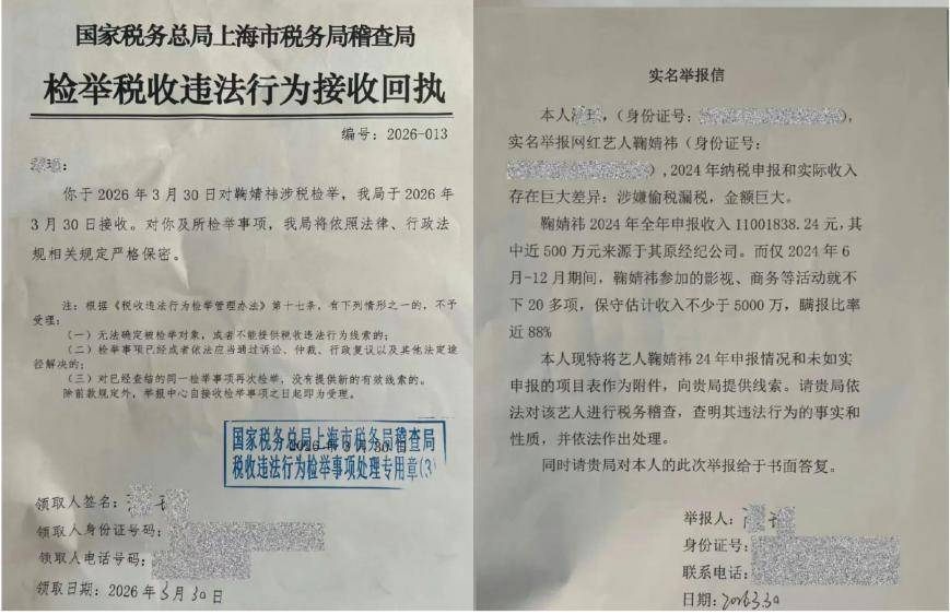 近日,演员鞠婧祎与前经纪公司丝芭传媒的合约纠纷再度升级,一场围绕偷税举报、合约效力及商业权益的争议持续发酵。3月31日,一则“鞠婧祎被实名举报偷税漏税”的话题登上微博热搜榜首,举报材料显示,其2024年申报收入约1100万元,但同年6月至12月实际收入超5000万元,涉嫌瞒报比例达88%。举报中提及的收入明细包括FENDI手袋代言、范思哲推广、百度地图代言及网剧《月鳞绮纪》1600万元片酬等。