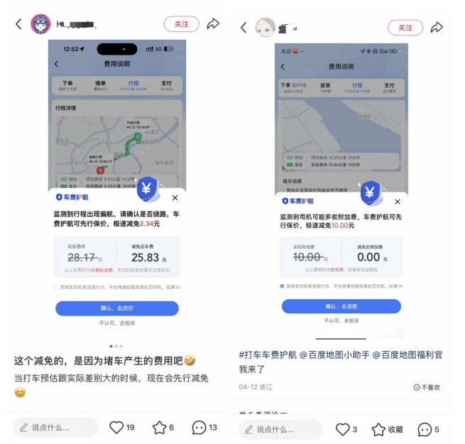 近日,百度地图正式上线“打车车费护航”专项服务,通过技术手段构建起覆盖行程全环节的费用保障体系。用户选择带有“车费护航”标识的车型时,系统将实时监测行程轨迹,对异常收费、路线偏移等情况进行智能识别与快速处理。该服务包含三大核心机制:针对违规加收附加费的行为,系统可自动识别并当场退还;发现绕路情况立即计算差价并秒退用户;若未成功上车则启动全额退款流程,全程无需用户主动申诉。