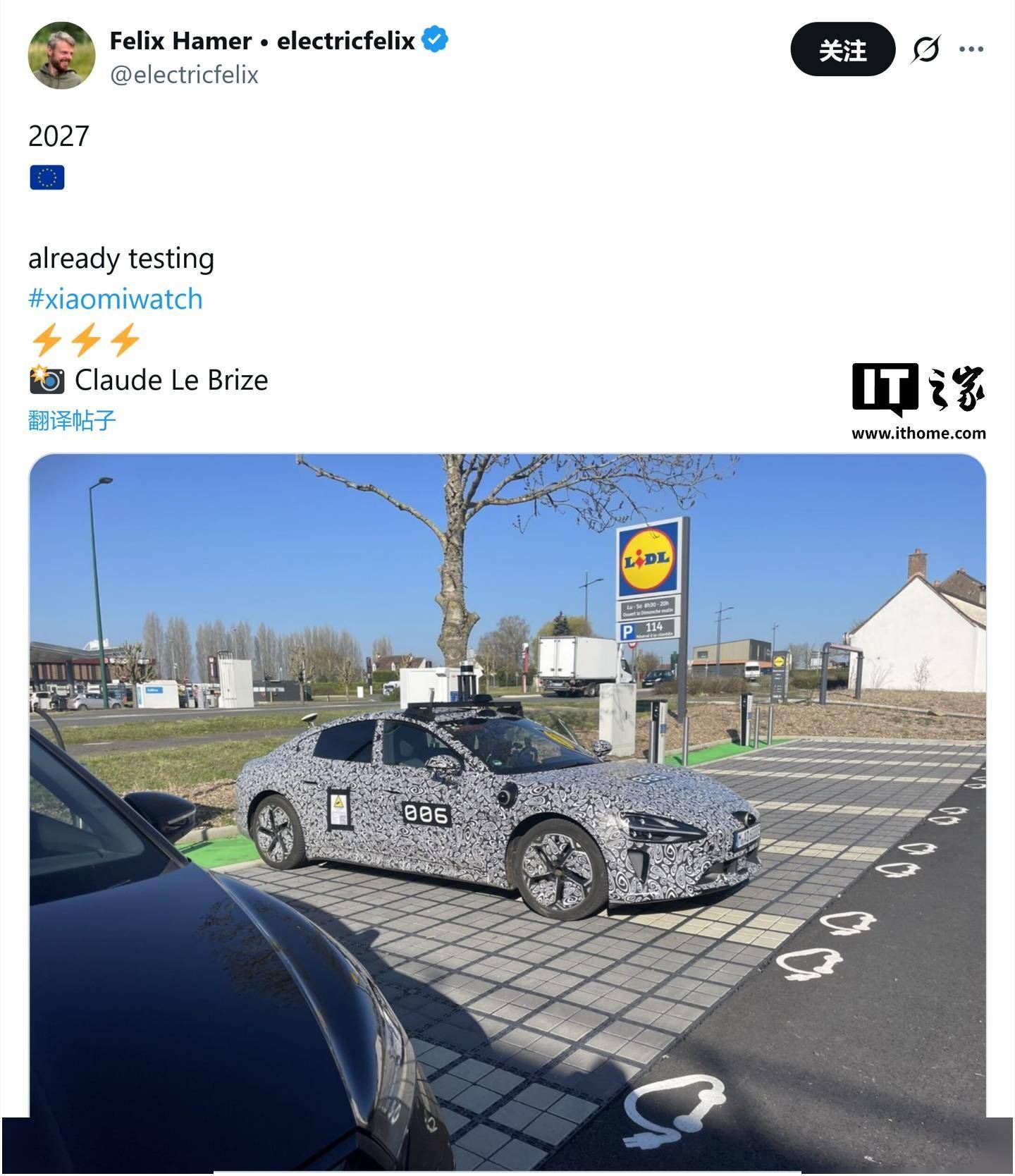 据介绍,目前至少有6辆带有独立编号的小米SU7原型车正在欧洲多国进行路测。其中,编号为002和005的测试车悬挂德国车牌,于今年2月在荷兰阿姆斯特丹亮相;编号003的SU7测试车3月在波兰被拍到;编号006的原型车则现身法国一家超市的充电站。这些测试车的出现,表明小米汽车正在加速推进其欧洲市场的测试计划。