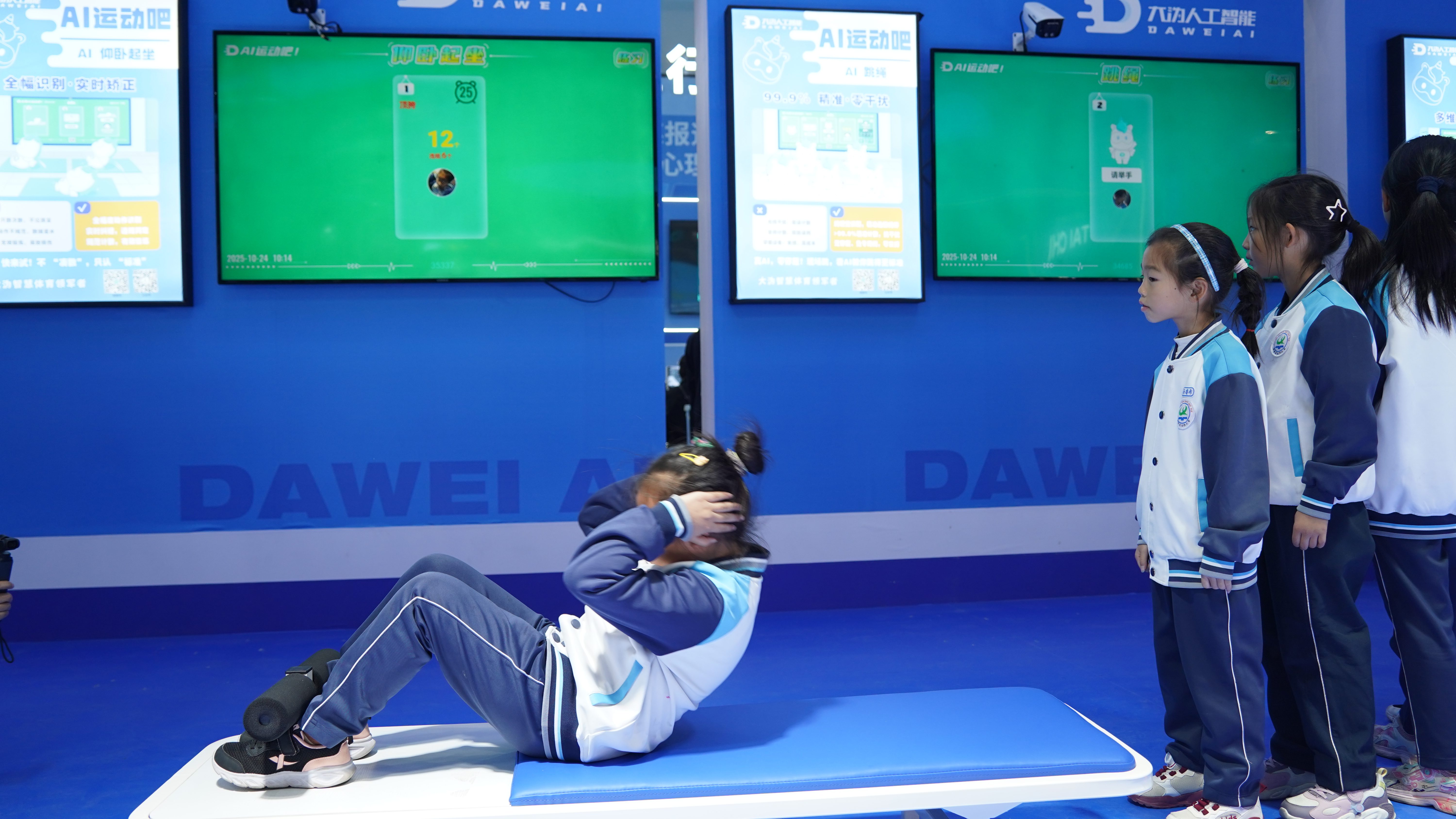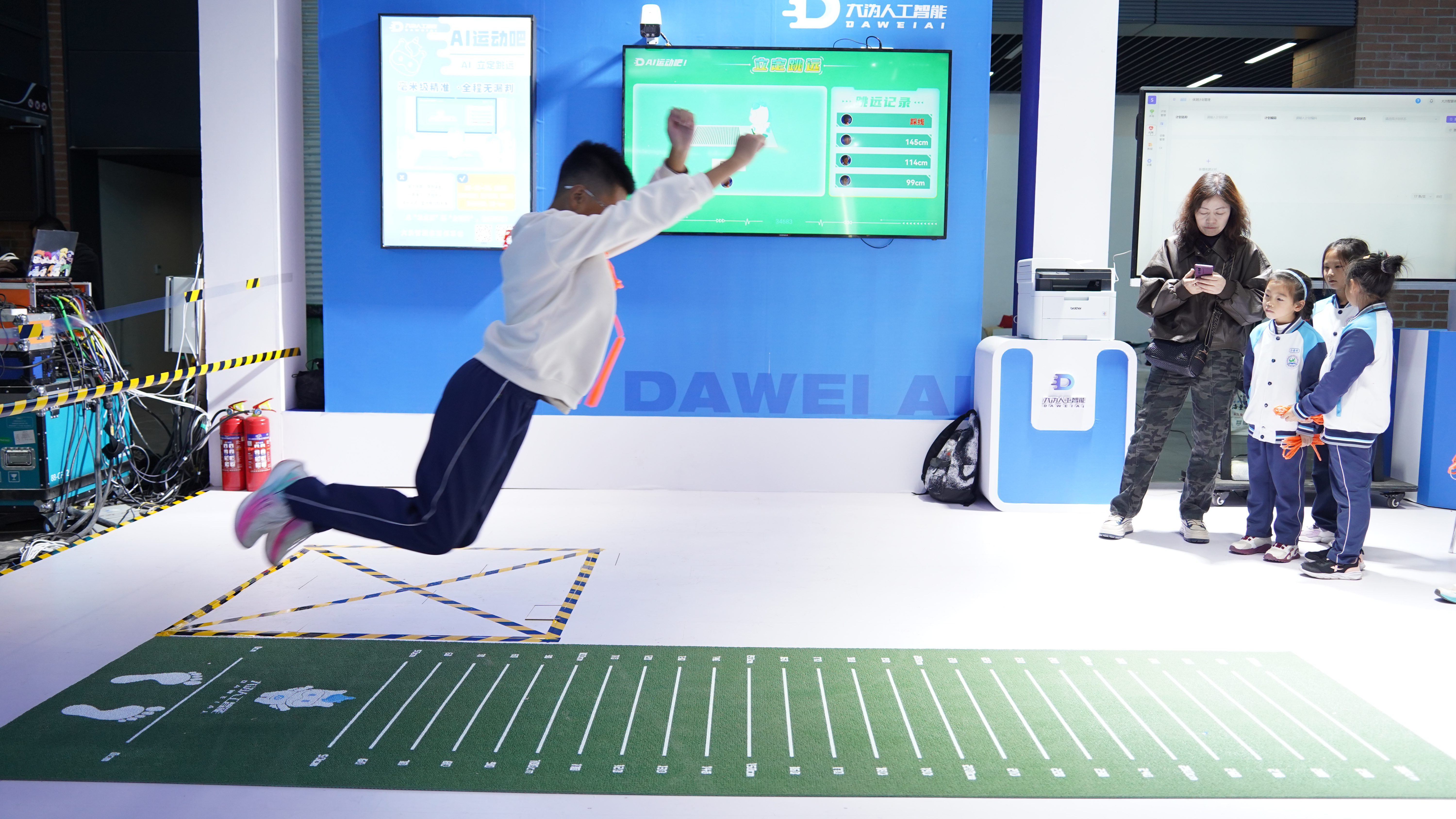 展会期间,大沩打造的“智跳未来”AI跳绳挑战赛成为人气亮点。比赛采用9人同台竞技模式,依托智能设备和AI计数系统,实现精准评判和实时反馈。现场气氛热烈,参赛选手在科技赋能中体验运动乐趣。