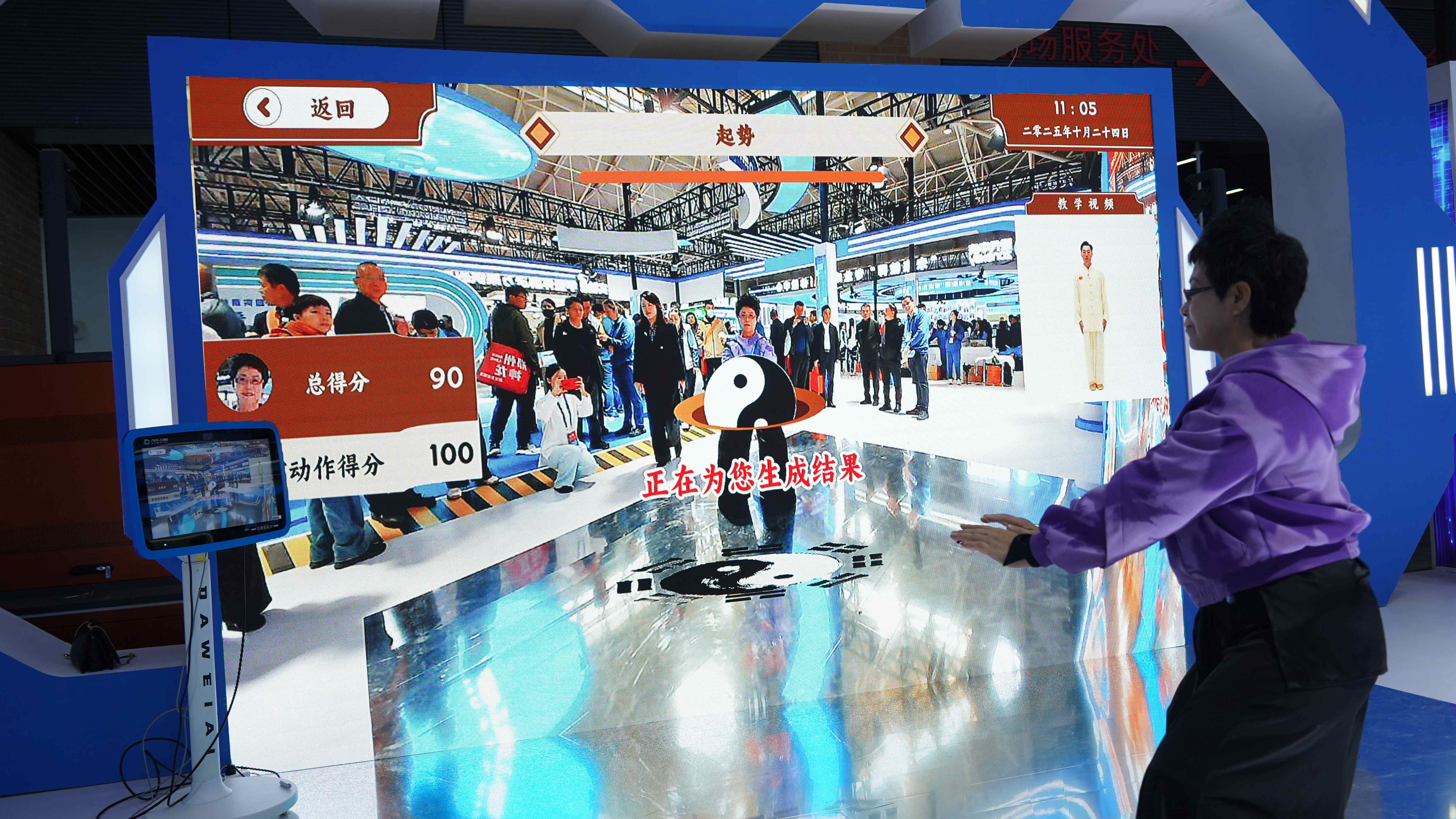展会期间,大沩打造的四大智慧体育体验区成为现场焦点。在AI太极展示区,武术表演与互动地屏融为一体,配合AI视觉动作评估系统,为传统体育项目注入科技活力。多位教育界人士现场体验后表示,该系统有助于推动传统武术教学的标准化与智能化。