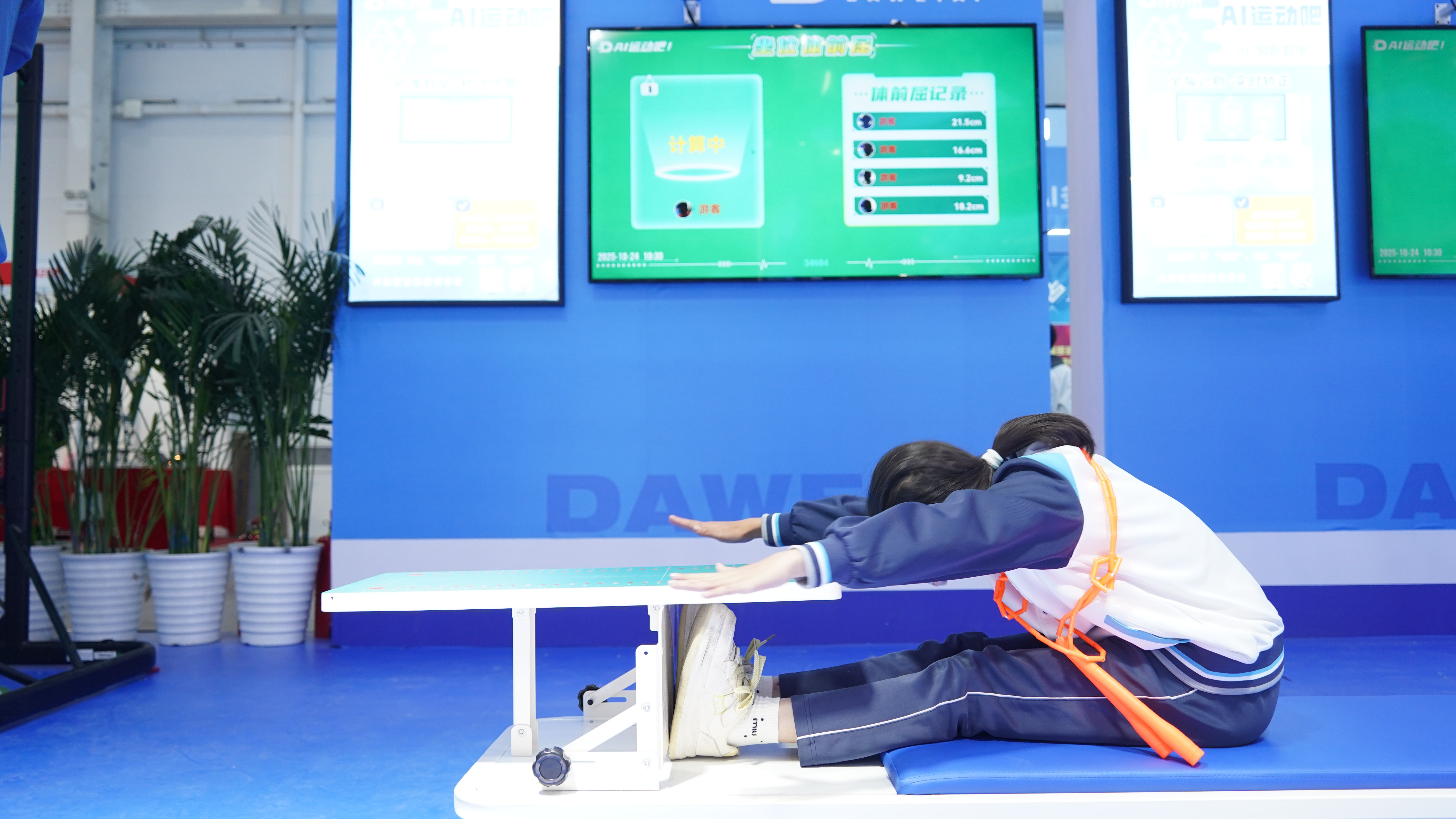 中考体测特训站前更是排起长队,学生们通过AI立定跳远、坐位体前屈等项目的智能测试,实时获取体测成绩分析。现场体育教师认为,该系统不仅服务于中考体育测试,更有助于引导学生开展常态化科学训练。