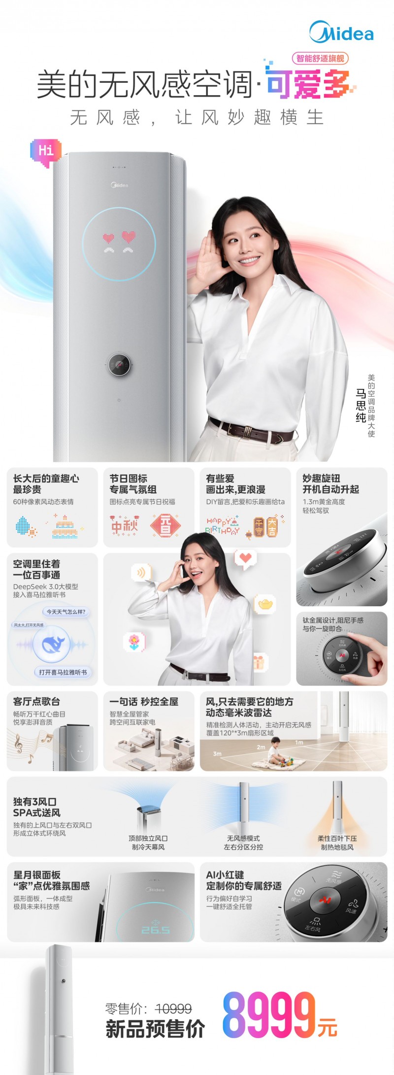高端家电的核心价值,正从功能满足迈向情绪共鸣与情感陪伴。美的无风感空调·可爱多不仅是一款智能、舒适空调,更是兼具人文关怀的”敏感型“空调,它既用无风感技术解决用户的生理敏感,也用智趣交互治愈大家的情绪敏感,更让决策敏感的家庭有了更好的选择,让空调不再只是调节温度的设备,而是成为真正懂你的智能伙伴。