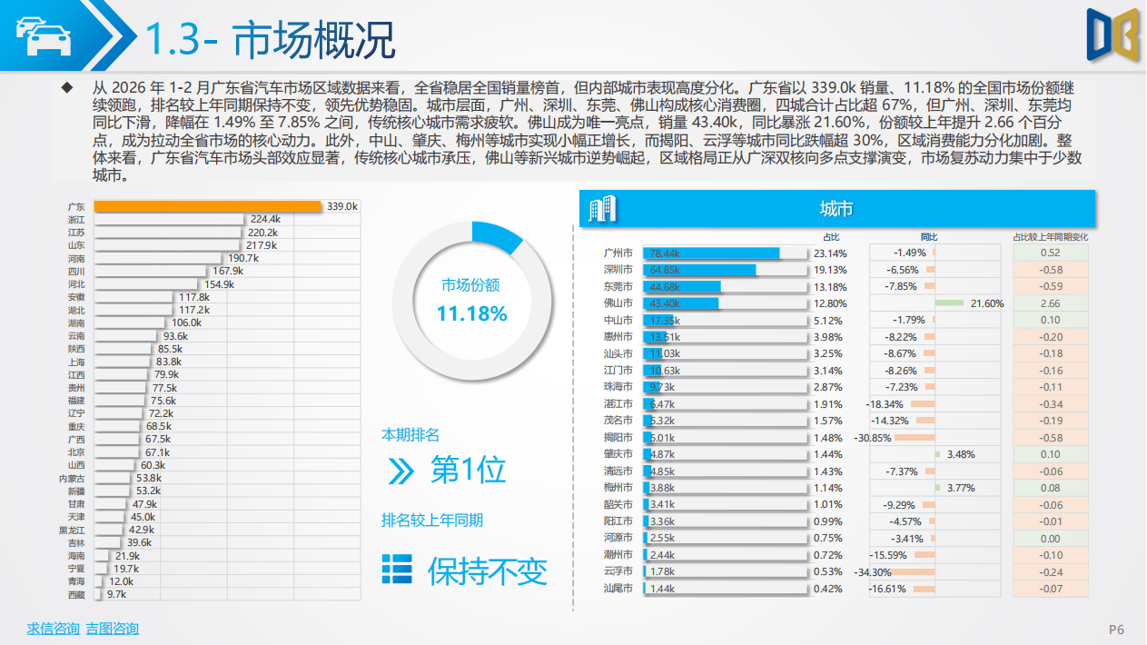 区域市场分化特征显著。广东省继续保持全国销量第一的地位,但内部城市表现差异明显。广州、深圳、东莞等传统核心城市需求疲软,而佛山市销量逆势暴涨,成为全省增长核心区域。市场格局逐步从单极主导转向多点支撑,区域消费活力呈现差异化分布。在动力类型方面,燃油车市场占比回升,2.0升排量车型与传统自动变速器成为增长主力,新能源车型需求出现明显收缩。