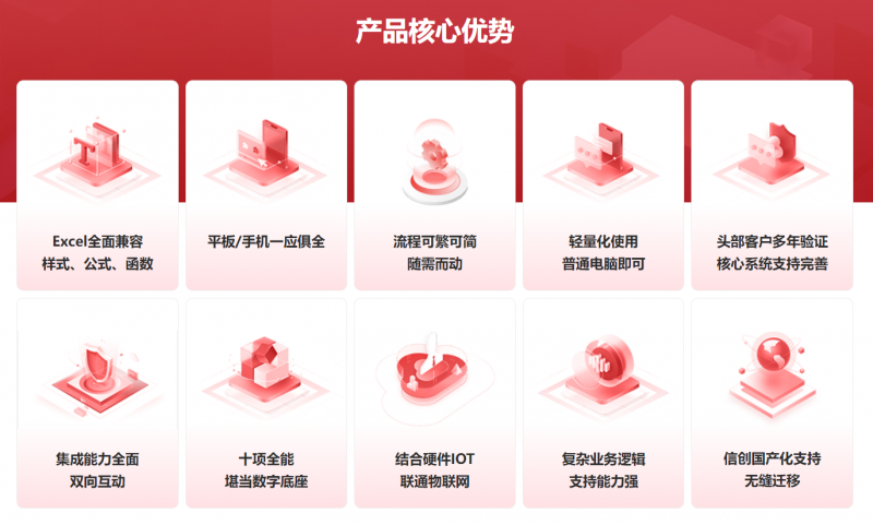 魔方网表的核心理念,是以技术驱动数字化转型。其平台深度融合了多项自主创新技术,构建出符合企业复杂场景需求的高适应性数字中枢,能为企业提供全面数字化解决方案: