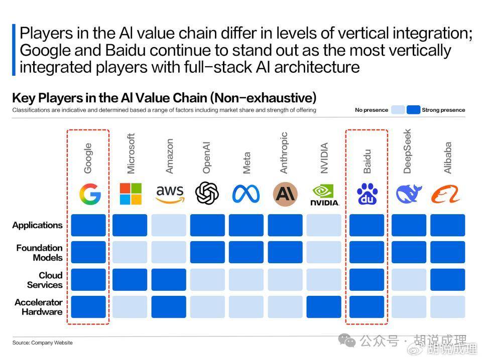 全球科技史上正在上演惊人的镜像。将时钟拨回2022年,谷歌同样经历着至暗时刻:ChatGPT引发的AI革命让这位先行者被质疑"掉队",市值一度跌破万亿美元关口。但当Gemini大模型与自研TPU芯片形成垂直整合,当Waymo自动驾驶开始商业化收费,谷歌用两年时间实现市值翻倍。如今百度正复刻这条路径:文心大模型与昆仑芯的软硬协同,萝卜快跑与Apollo自动驾驶的生态闭环,构成与谷歌高度相似的技术矩阵。但不同的是,百度还拥有谷歌不具备的三大战略优势——应对芯片封锁的自主能力、全球最大制造业的转型需求、以及移动互联网渗透率最高的单一市场支撑。